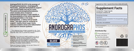 AndrograPHOS GLUCO is the synergy of Phosphoethanolamine + Andrographis Paniculata, precisely formulated to support your overall health one cell at a time . This blend helps support and optimize blood sugar levels regulation. The amino acid phosphoethanolamine, which studies show it improve mitochondrial function; it also assists in the bioavailability of the active ingredient (andrographolides) in the body.